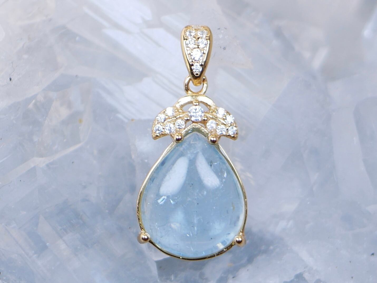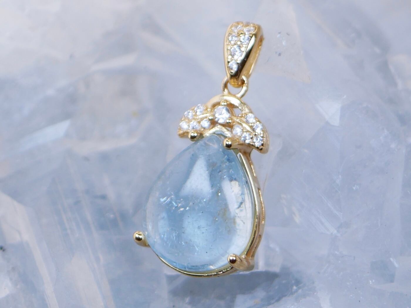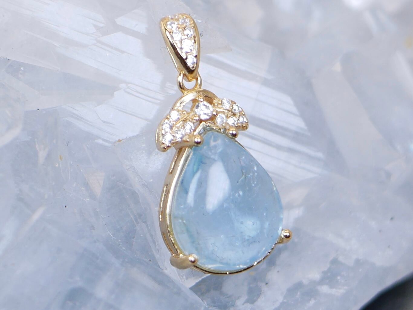 水のような艶々アクアマリンドロップ ペンダントトップ ゴールド