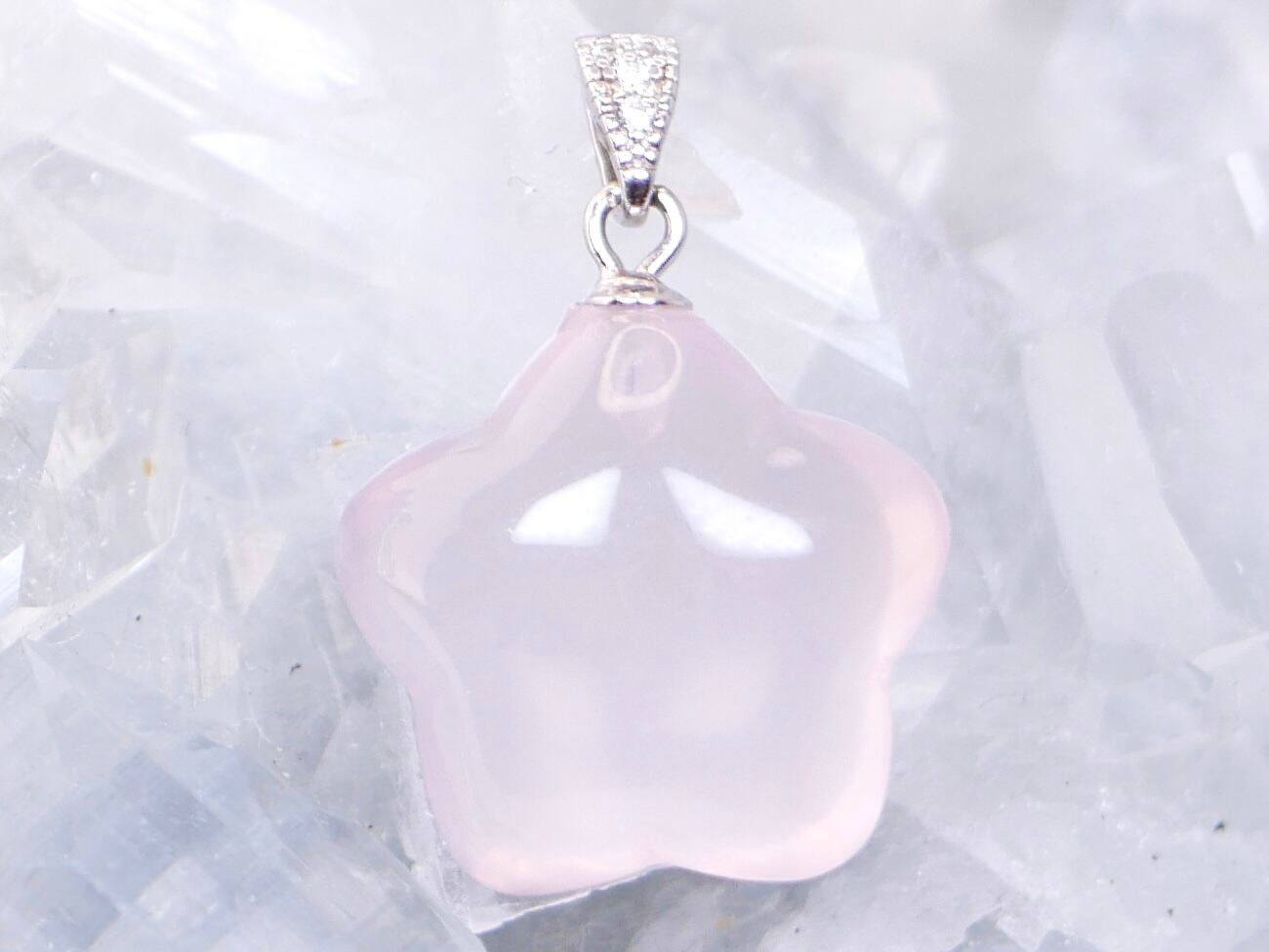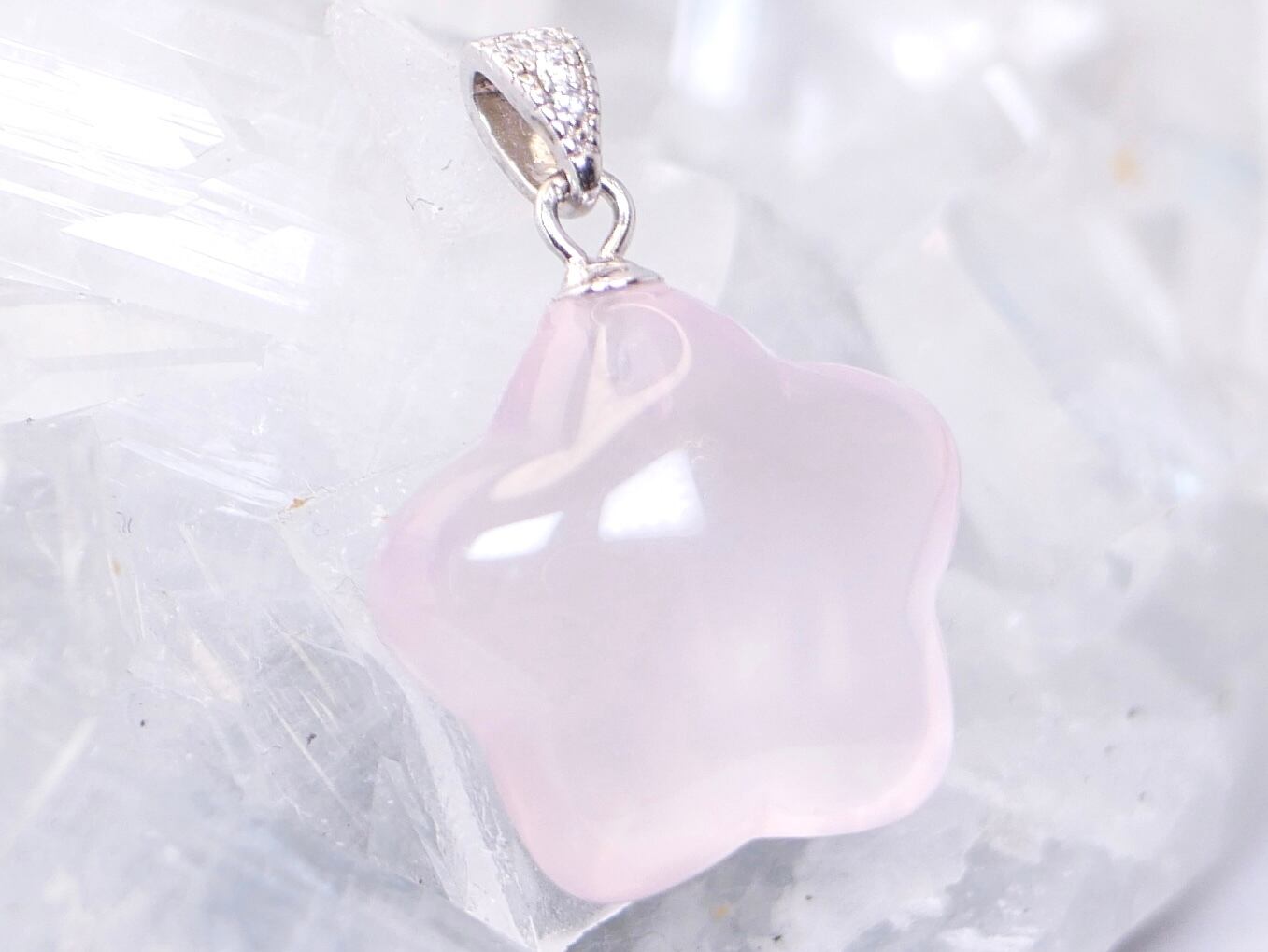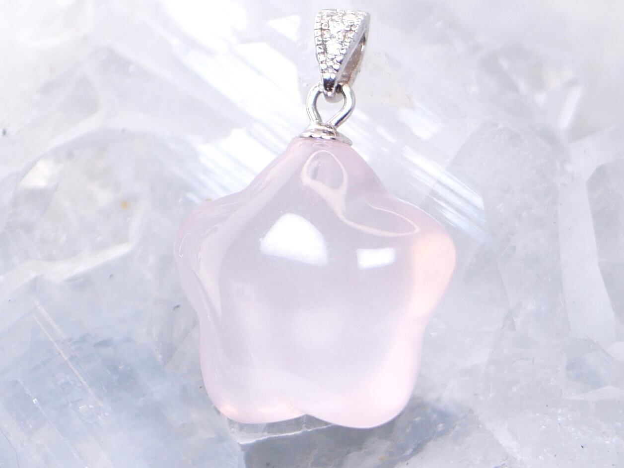 つやつや透明感抜群スター型ローズクォーツ ペンダントトップ シルバー
