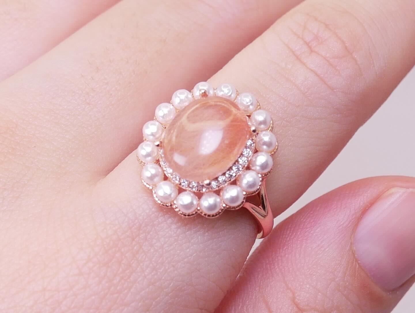 パールなピンクラビットヘア リング