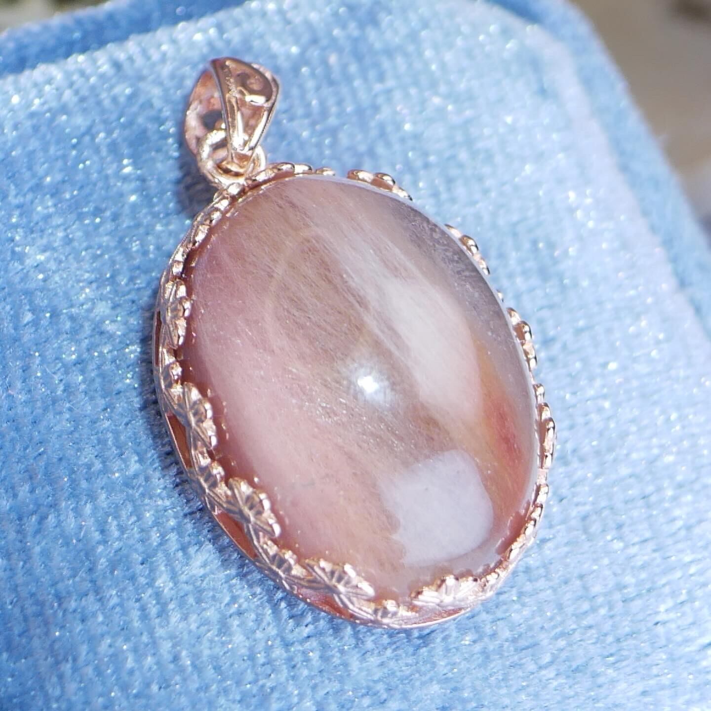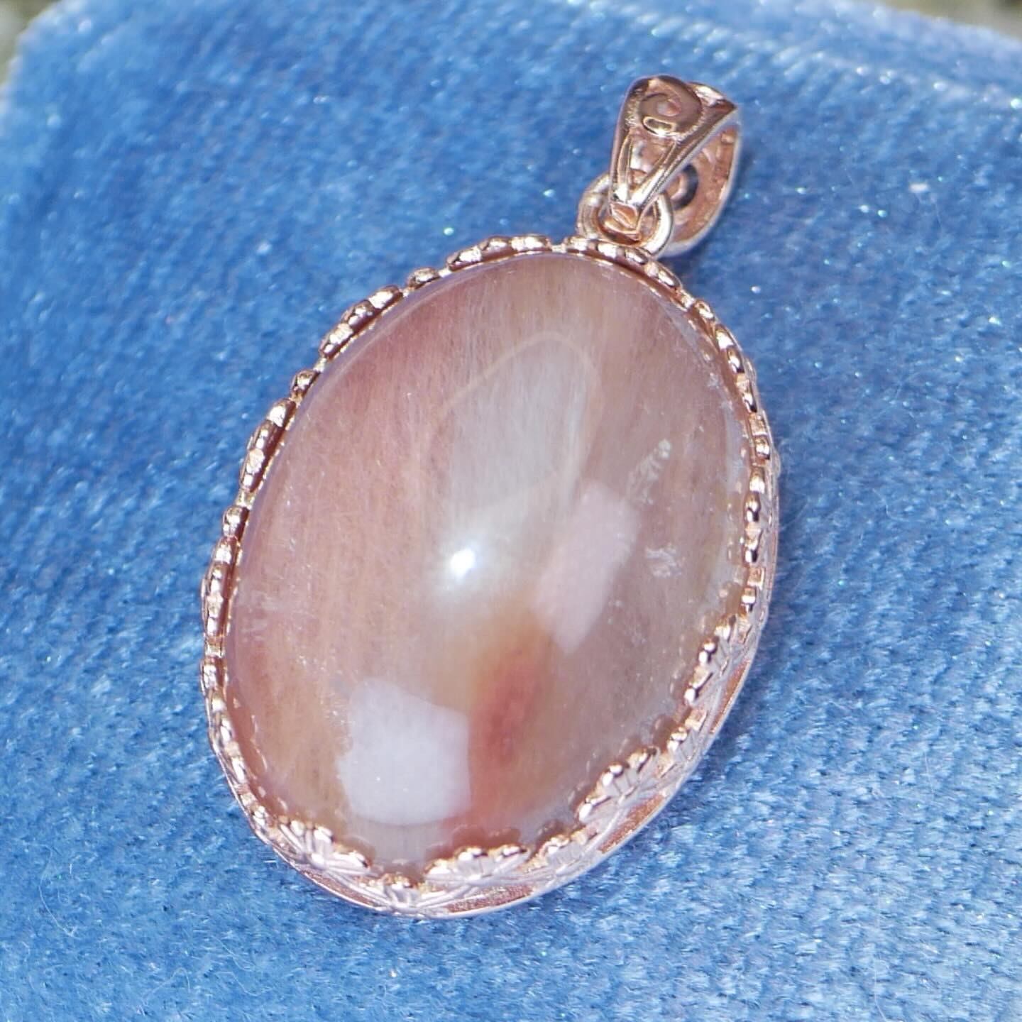 ピンクラビットヘア 卵型 ペンダントトップ シルバー925