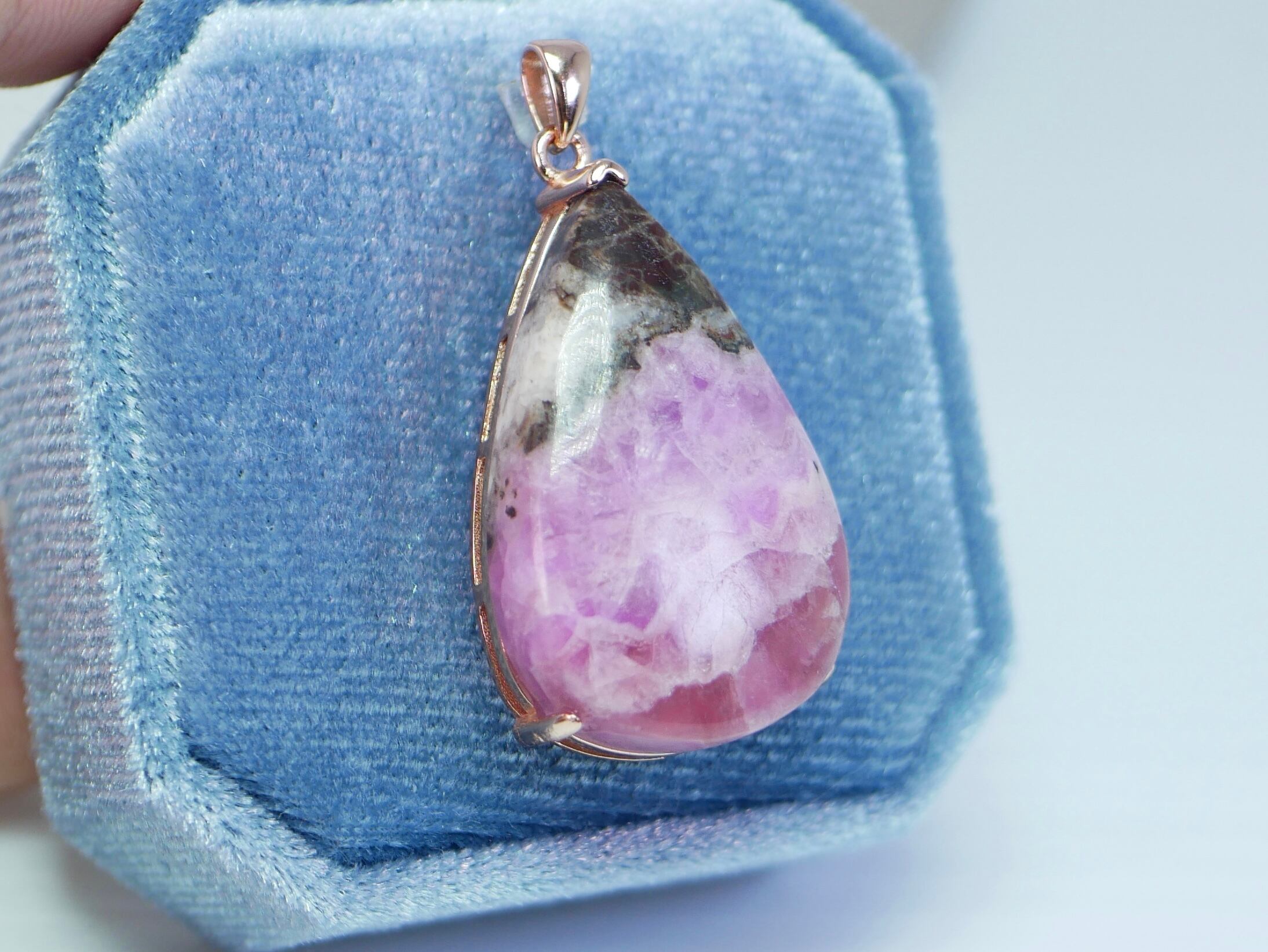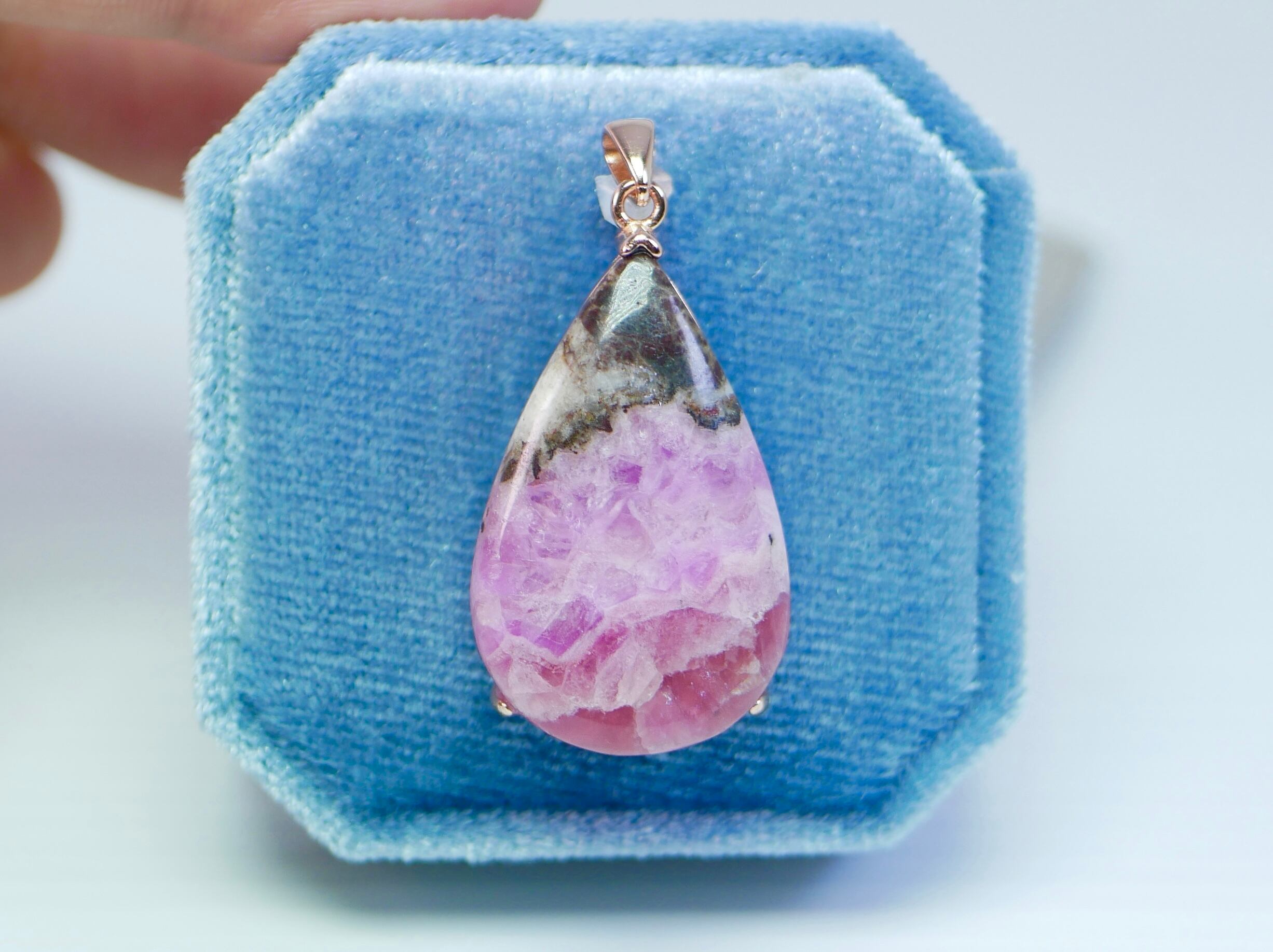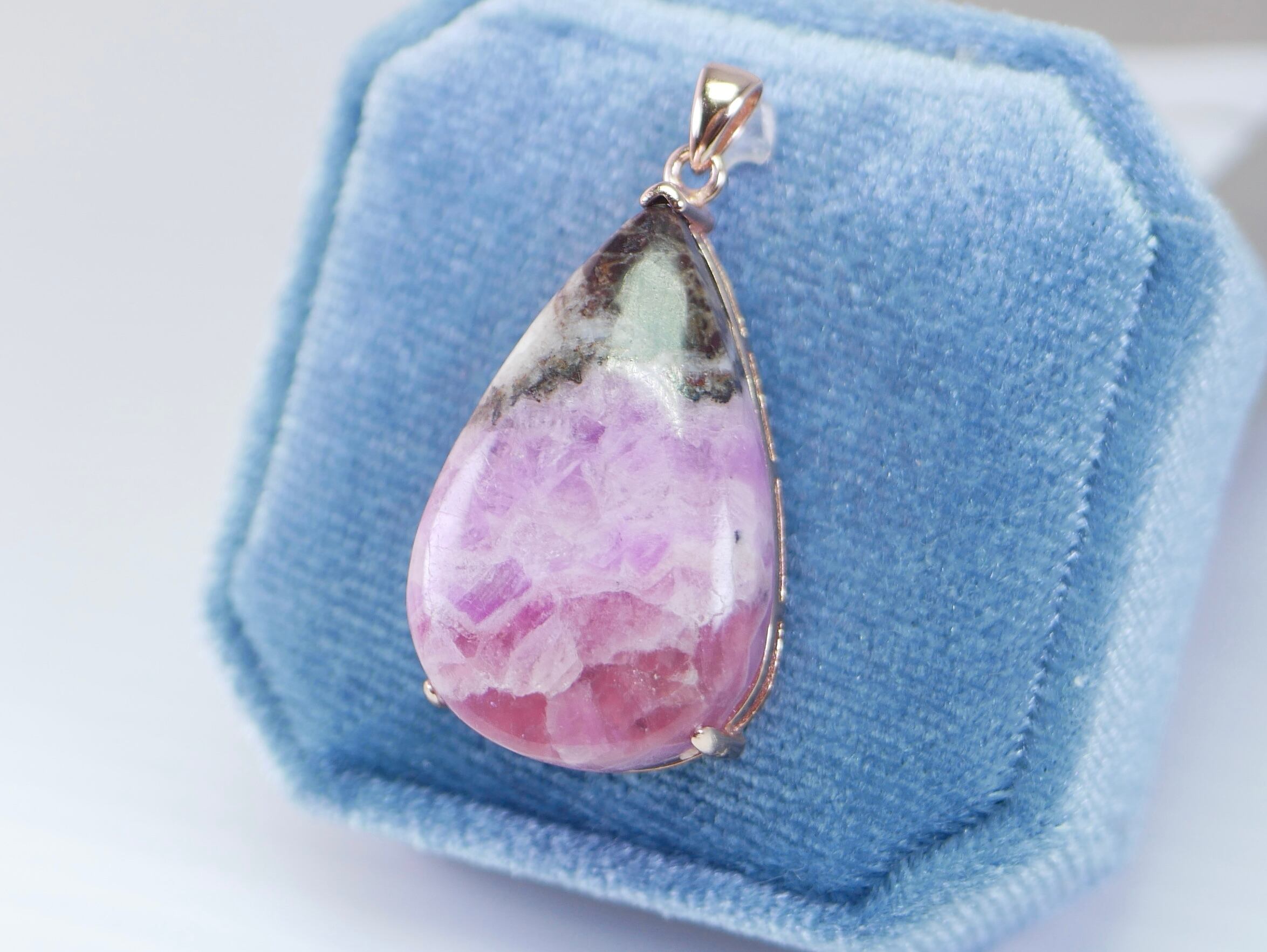アポロチョコみたいな雫型ピンクコバルトカルサイト ネックレストップ シルバー925