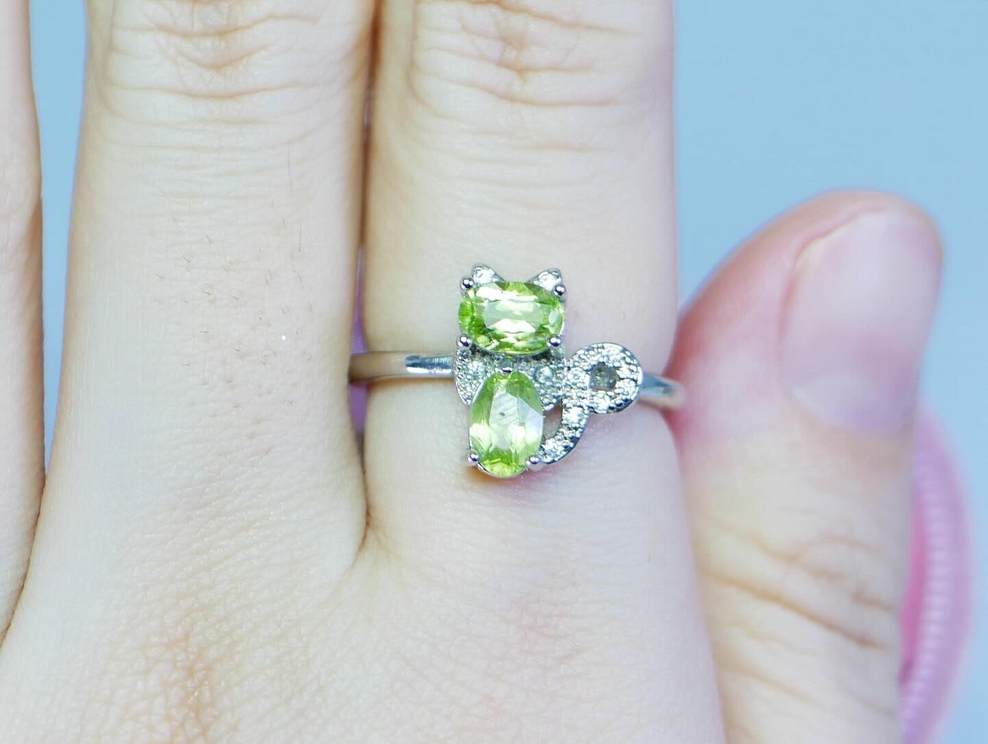ペリドット 猫 真鍮  フリーサイズ